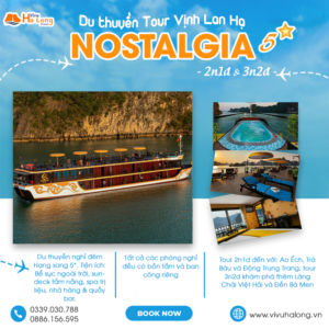 Nostalgia Cruise – Tour Du thuyền 5 sao Vịnh Lan Hạ 2n1d, 3n2d (10cabin)