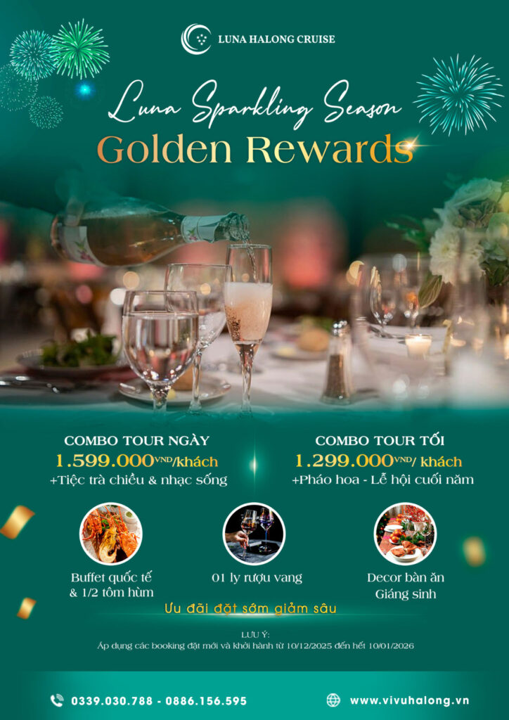 Từ 10/12/2025 – 10/01/2026, Luna ra mắt 2 gói combo siêu ưu đãi dành cho khách đoàn, doanh nghiệp, nhóm hội họp và Year End Party. Đây chính là thời điểm vàng để bạn tổ chức một hành trình cuối năm thật trọn vẹn trên vịnh Hạ Long!