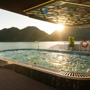 - 17h00: Tự do thư giãn – tiệc hoàng hôn trên Vịnh. Quý khách tự do nghỉ ngơi, tận hưởng hoàng hôn trên sundeck