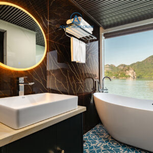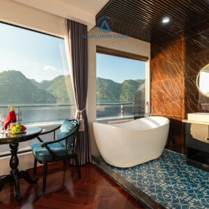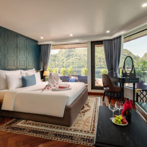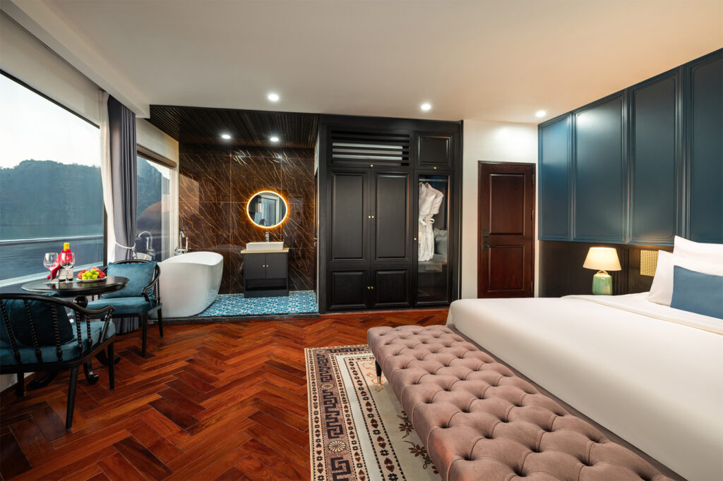 - Phòng nghỉ trên du thuyền sang trọng với ban công (riêng và chung) và bồn tắm nằm
