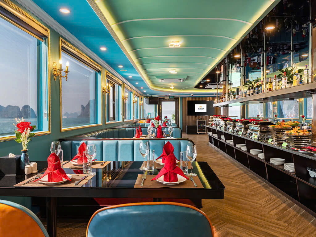 - Tiện ích: bữa trưa buffet, bể trên boong tàu, tắm tráng