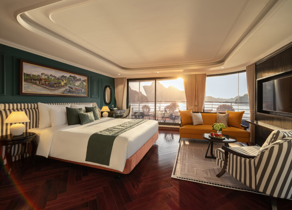 - Ban công kính view tràn: Đột phá trong trải nghiệm khách hàng. Không giới hạn tầm nhìn để du khách có thể thoải mái ngắm trọn vịnh Lan Hạ từ trong căn phòn của mình.