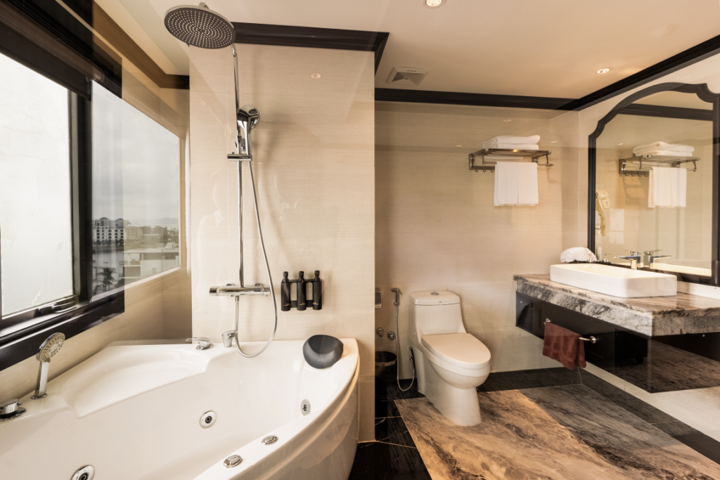 - Phòng ốc: Nội thất sang trọng, tiện nghi theo tiêu chuẩn quốc tế, với nhiều lựa chọn phòng nghỉ như Deluxe Studio hay FTE Suite với view biển.