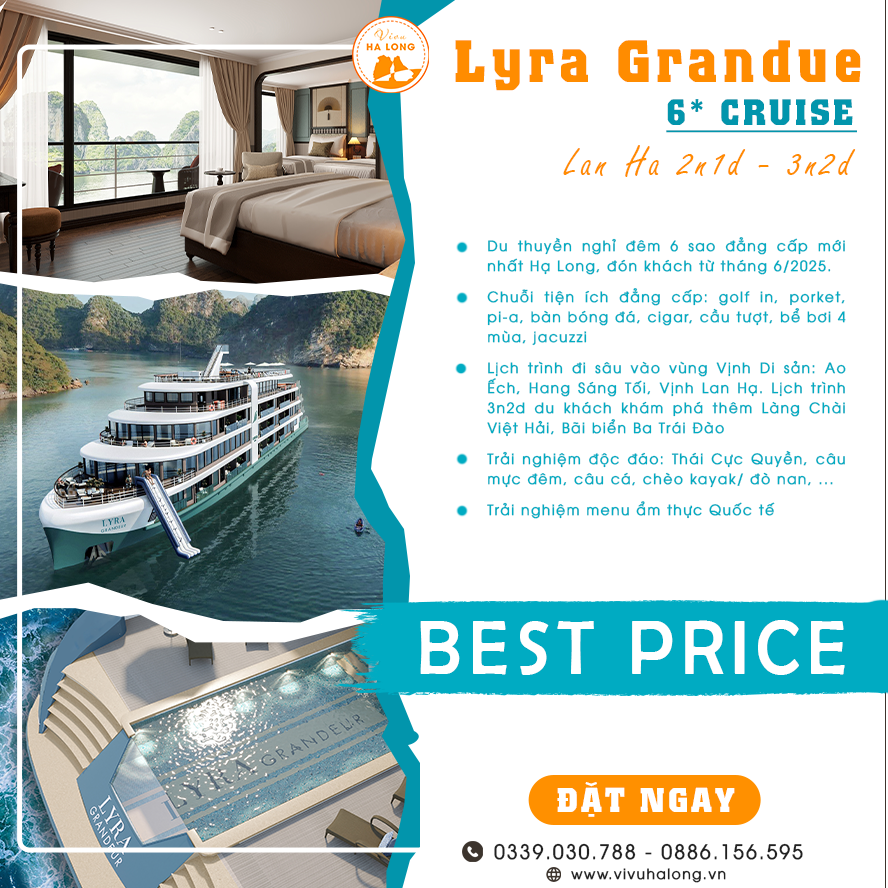 Lyra Grandeur Cruise – Du thuyền 6 sao mở lối tour Vịnh Hạ Long & Lan Hạ tour 2n1d, 3n2d