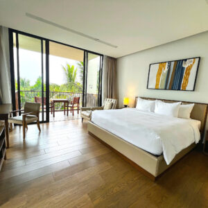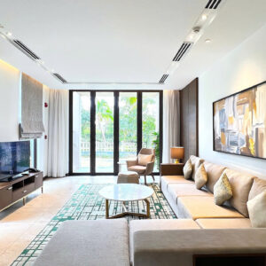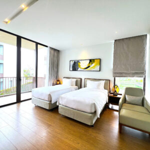 Lakeside Villa có tầm nhìn hướng hồ, diện tích 369m2, với 4 phòng ngủ (2 phòng giường King và 2 phòng giường Twin) dành cho 08 người lớn và 08 trẻ em. Phòng ngủ sang trọng, phòng tắm tiện nghi, phòng khách và bếp liên thông tạo không gian sinh hoạt chung rất hợp lý cho các gia đình và nhóm bạn.