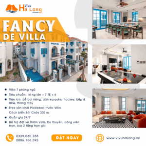 Fancy De Villa – Villa 7 ngủ, bể bơi, hokey, karaoke đối diện Biển Bãi Cháy